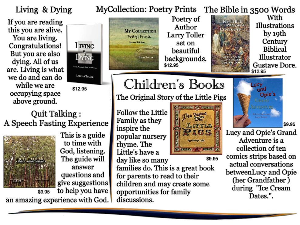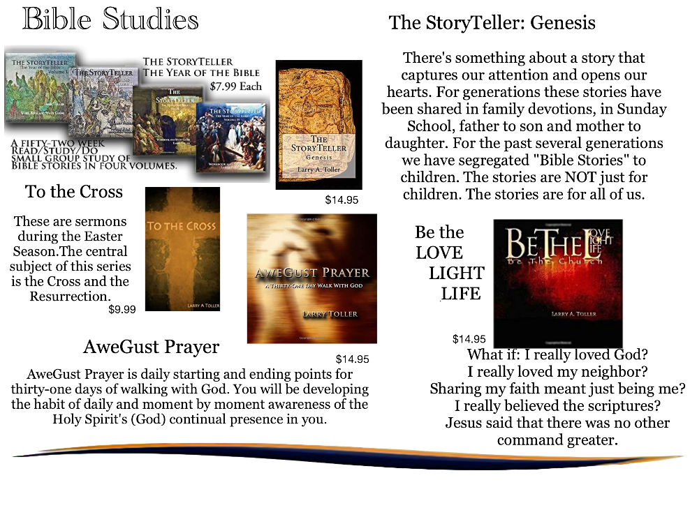 Larry Toller is the pastor at Chapel of the South Fork, South Fork, Colorado. He has served in Churches in Kentucky, Oklahoma, Texas, Illinois, and Arkansas. He was Policy Advisor on staff with Governor Mike Huckabee in Arkansas. He has also served in business as Associate Executive Director of the Illinois Baptist State Association, Business Administrator at the Arkansas Baptist Children's Home, Monticello, Arkansas, and Business and Support Services Director of Southwestern Baptist Theological Seminary in Fort Worth, Texas.